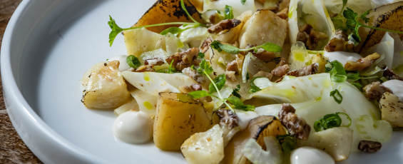 zeller, alma, tofu majonézzel grillázsdióval és ropogóssal 6, 8, 9, 10