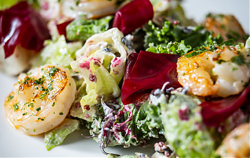 Téli saláta fokhagymás garnélával 7.590 (GM, LM) 2, 3, 10